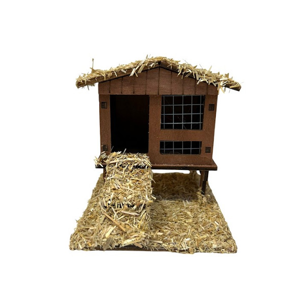 Gallinero de Madera con Techo de Paja para Belén (10x12x11 cm)