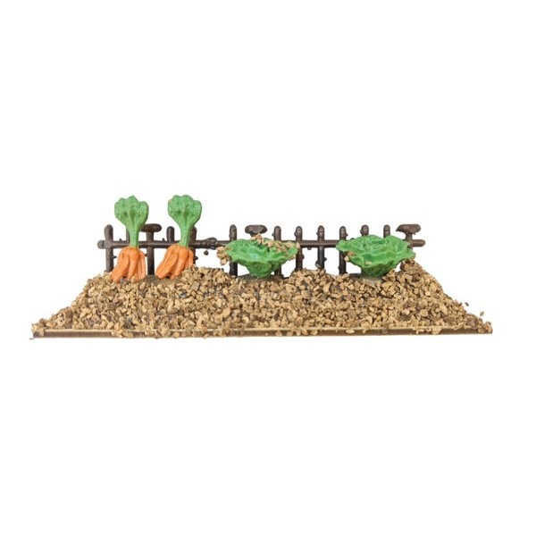 Completa tu Belén con este detallado huerto en miniatura, ideal para recrear escenas rurales llenas de realismo. Esta pieza incluye zanahorias, lechugas y una pequeña valla de madera sobre una base con efecto tierra, aportando un toque auténtico y tradicional a tu nacimiento.