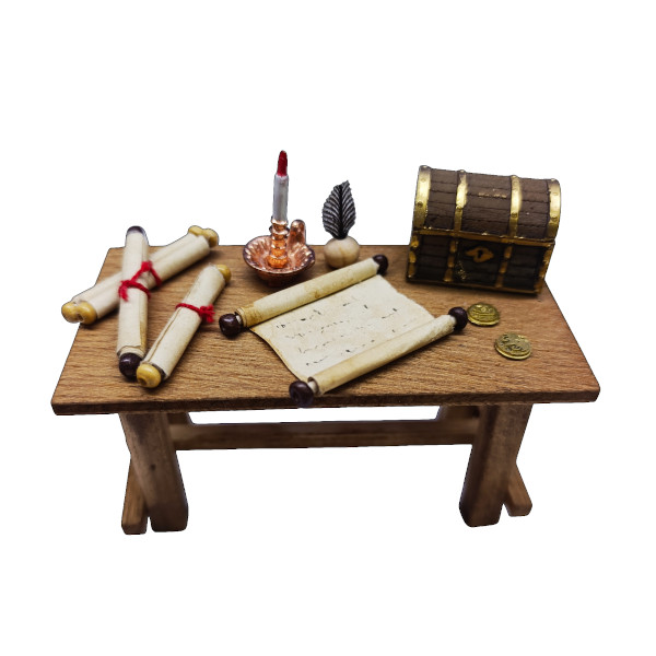 Añada un toque de autenticidad y vida a su nacimiento con esta mesa de escriba en miniatura, diseñada específicamente para belenes y dioramas. Esta pieza captura la esencia de los antiguos oficios, convirtiéndose en un punto focal perfecto para escenas de mercados, palacios o posadas.