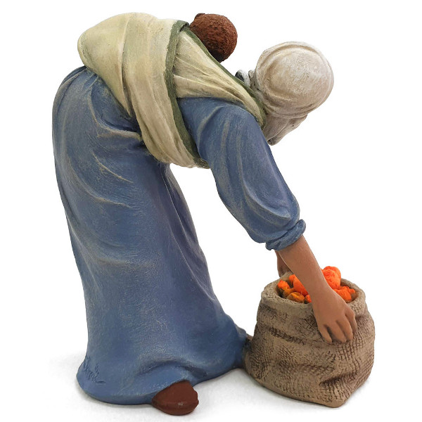 Mujer con saco de naranjas – Montserrat Ribes – Resina de Mármol – Artesanía de Alta Calidad.