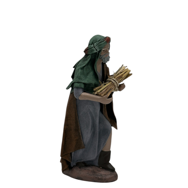 Pastor con leña entelado y pintado a mano.