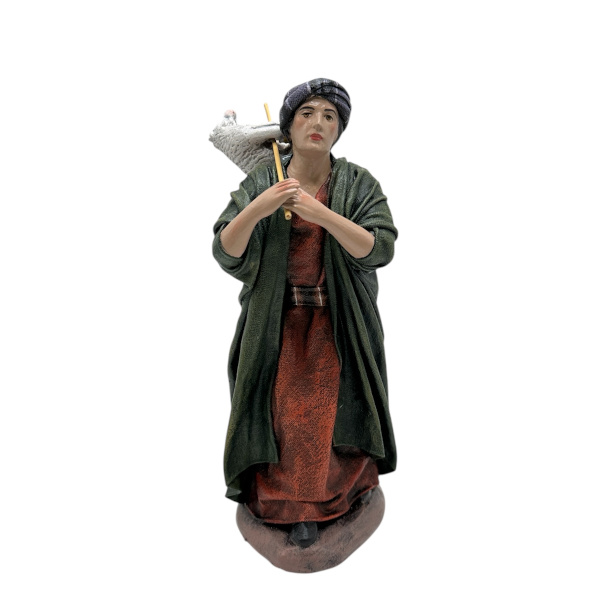 Pastor con cordero al hombro, doble entelado y pintada a mano (Galán)